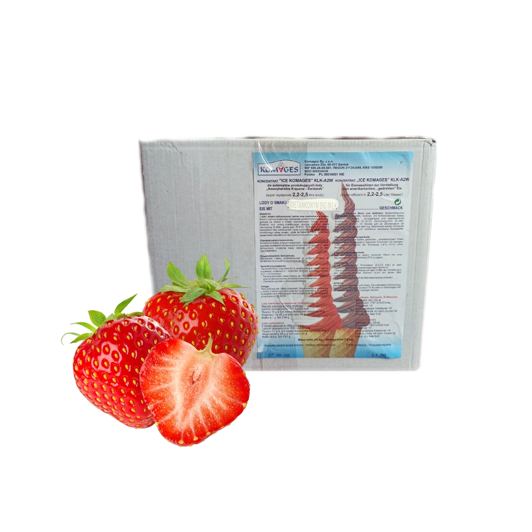 Komages Świder Jagoda- koncentrat lodów zimnych kręconych "Amerykańskie Kręcone" wysokiej wydajności do typowych automatów osiągających niskie temperatury mrożenia masy lodowej bez napowietrzania.
